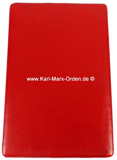Beim Übergang für die Halterung zwischen Pentagonspange und Orden wurde ebenfalls eine Aussparrung gelassen. • Der Karl Marx Orden passt perfekt in das Etui und hat dabei keinen Spielraum. • Das Etui ist glat.t Maße: ca. 98,6 mm x 148,7 mm x 26,4 mm Die Maße und Gewichte sind das Ergebnis von verschiedenen Messungen der 3. Ausführung. Vielen Dank an alle, die uns hierbei unterstützt haben und Ihre Orden zur Verfügung gestellt haben. 3. Variante: